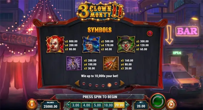 Jadi, segera bergabung dan bergabunglah dengan Chuckles, Giggles, dan Snickers dalam petualangan unik yang penuh dengan juggling jackpot dan putaran riang! Dengan desainnya yang menawan, fitur-fitur menarik, dan potensi kemenangan besar, 3 Clown Monty 2 siap menjadi favorit di antara para pemain yang mencari perpaduan antara hiburan dan hadiah yang menguntungkan.